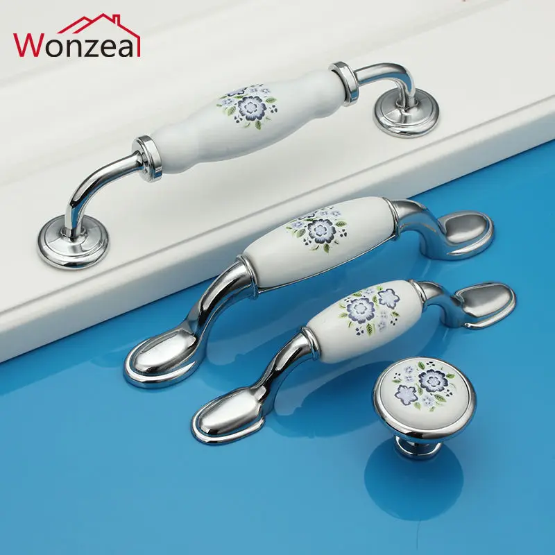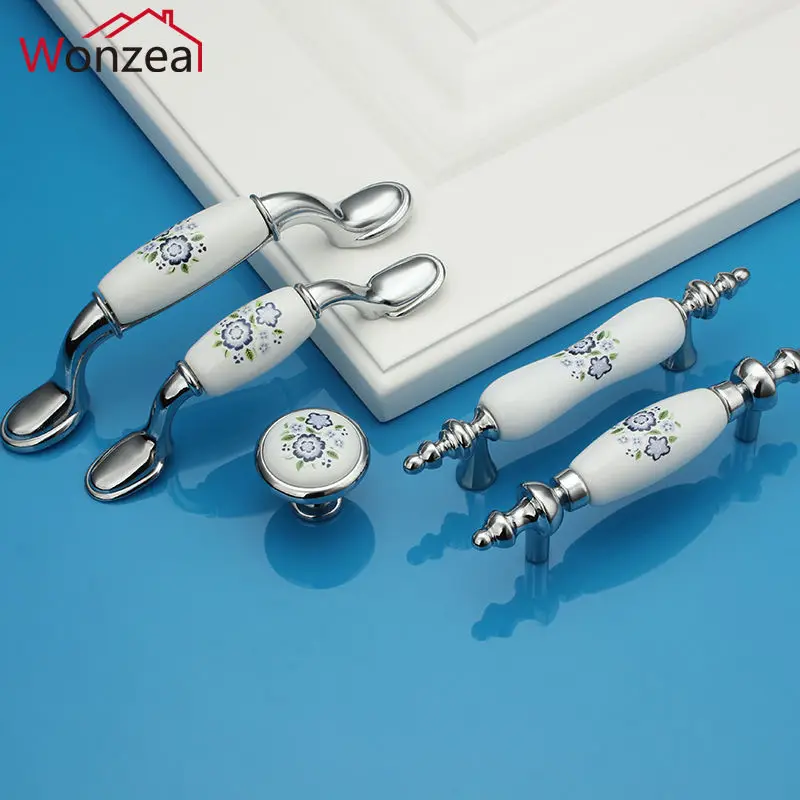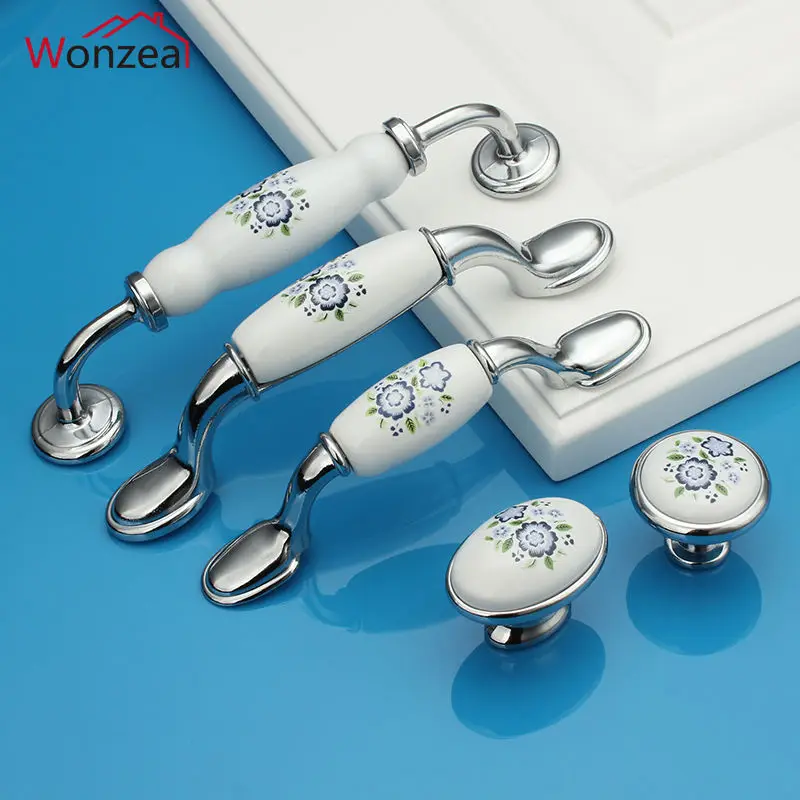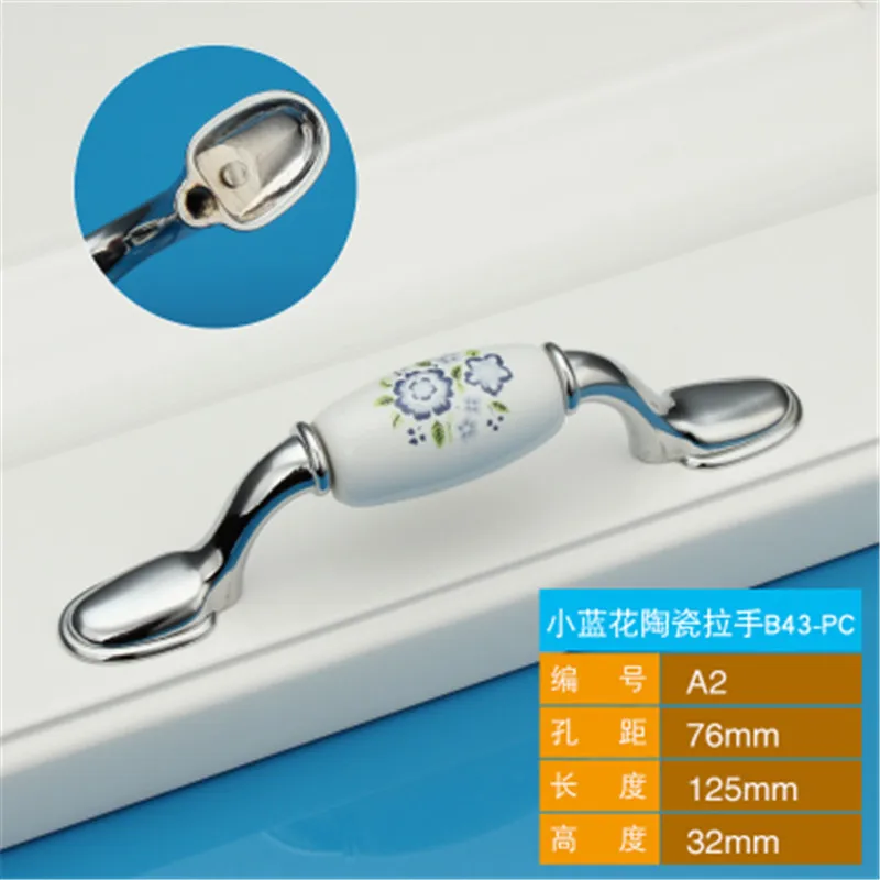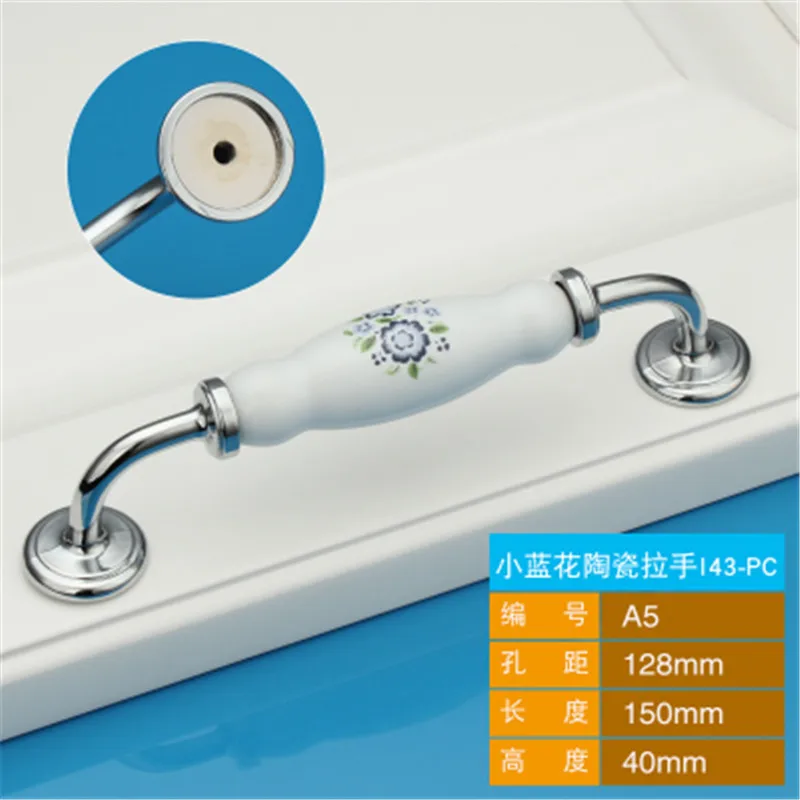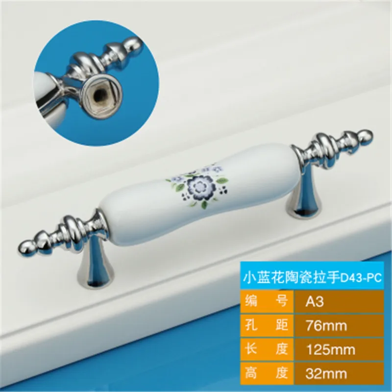 10 pièces/50pcs couleur argent bleu fleur céramique poignées de porte européenne Antique meubles tiroir poignées armoires de cuisine boutons tire.