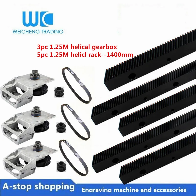 5 pièces 1.25 mod à support hélicoïdal longueur 1400mm + 3 pièces nema34 boîte à engrenages courte oblique + courroie de distribution HTD-550M + trou de vitesse 12.7mm/14mm.