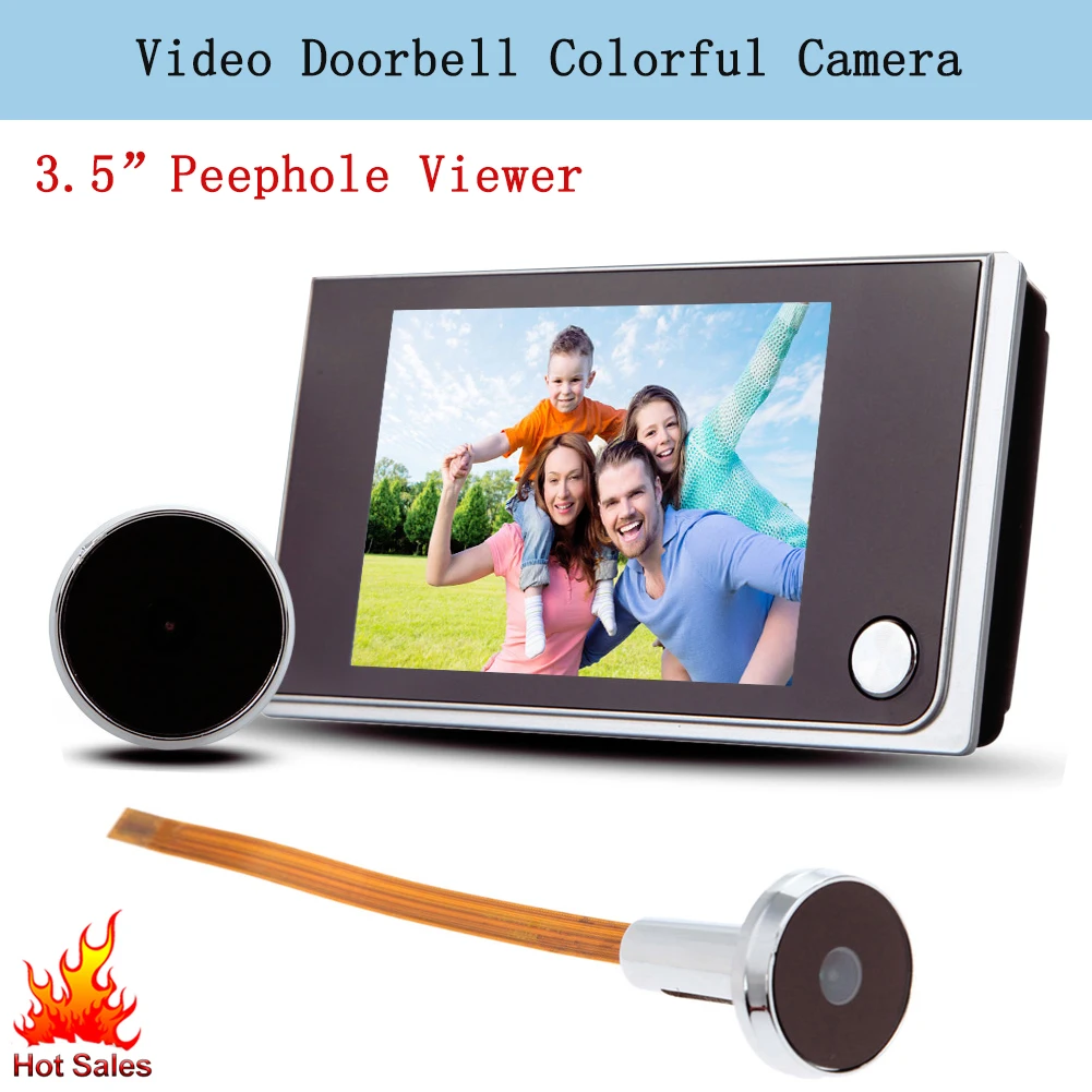 Carillon de sonnette numérique 3.5 pouces écran couleur LCD visionneuse de judas 120 degrés Mini carillon de porte extérieur surveillance 24 heures ES FR.