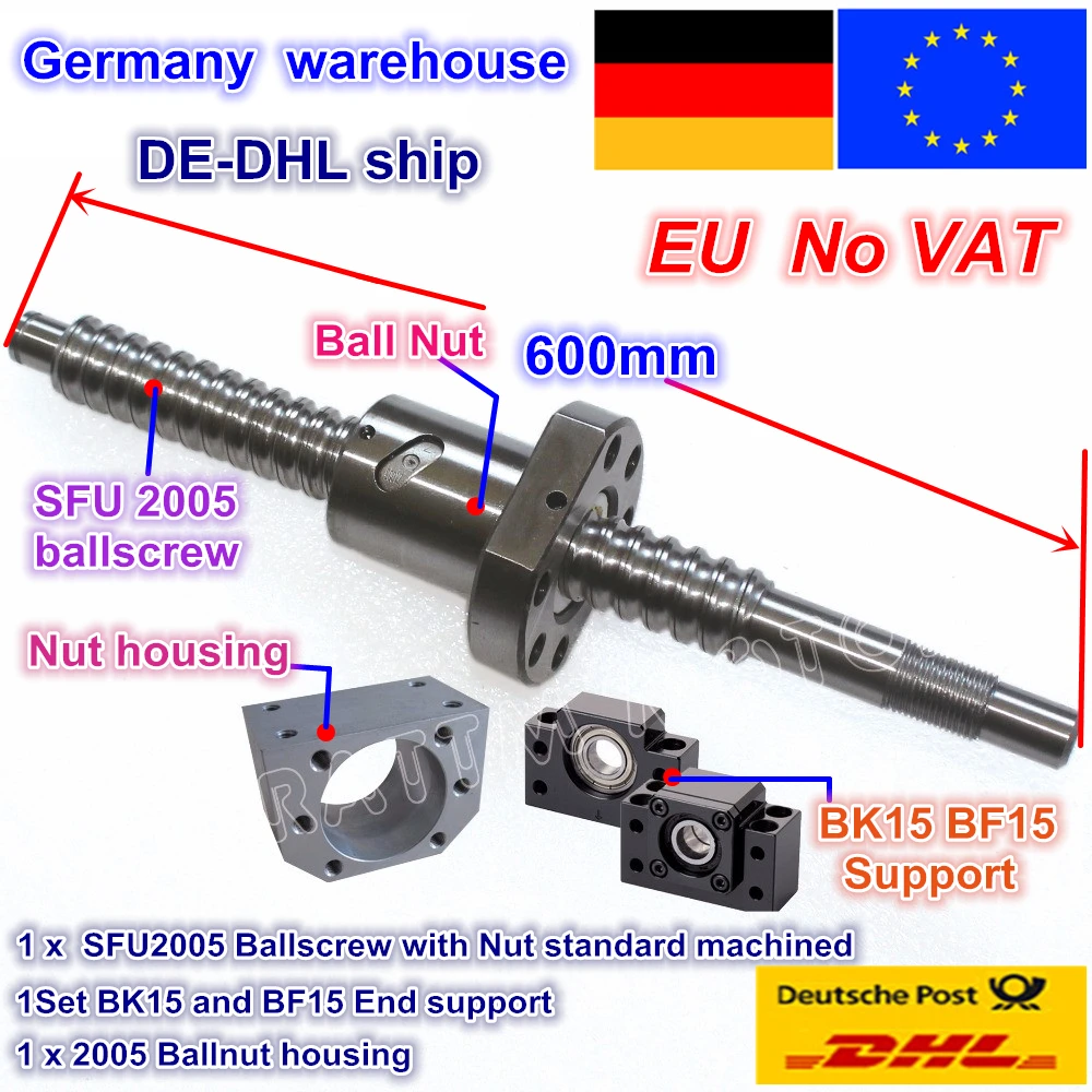 Kit DE vis à bille RM/SFU2005 sans tva L 600mm / L 800mm fin usiné avec écrou Support BK/BF15 et boîtier d'écrou pour routeur CNC.
