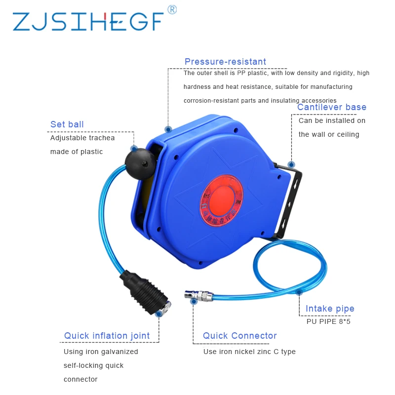 Tambour télescopique rétractable automatique de Tube d'unité centrale pneumatique de bobine de tuyau d'air des véhicules à moteur de 8*5mm 9m.
