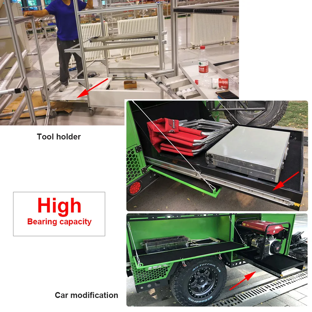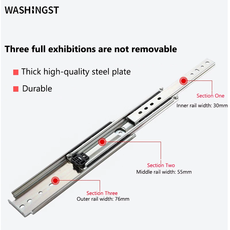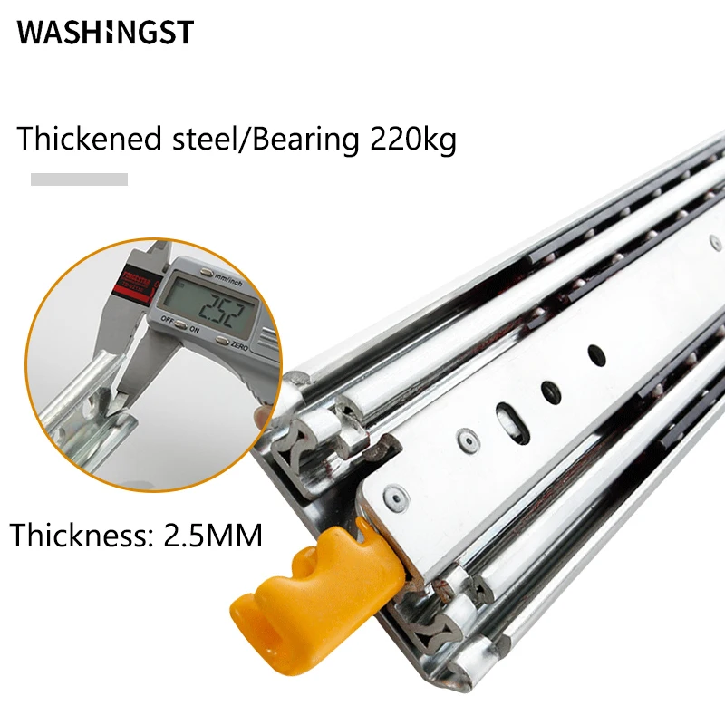 WASHINGST tiroir glissière rail robuste 76mm de large charge nominale 220KG tiroir curseur trois sections entièrement étendu coureur avec serrure