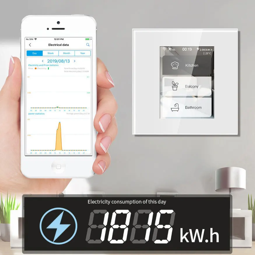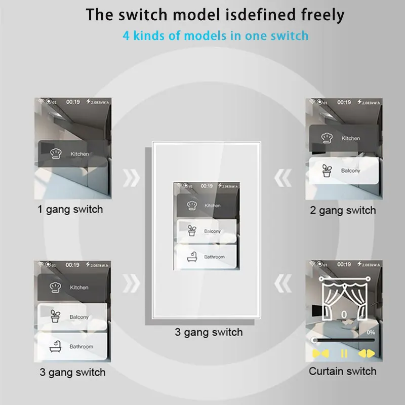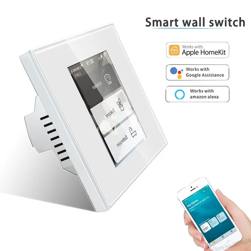 2020 derniers 4 modèles dans un commutateur de mur intelligent de WIFI d'affichage à cristaux liquides fonctionnent avec l'application homekit alexagooglehome pour la maison intelligente de commutateur intelligent.