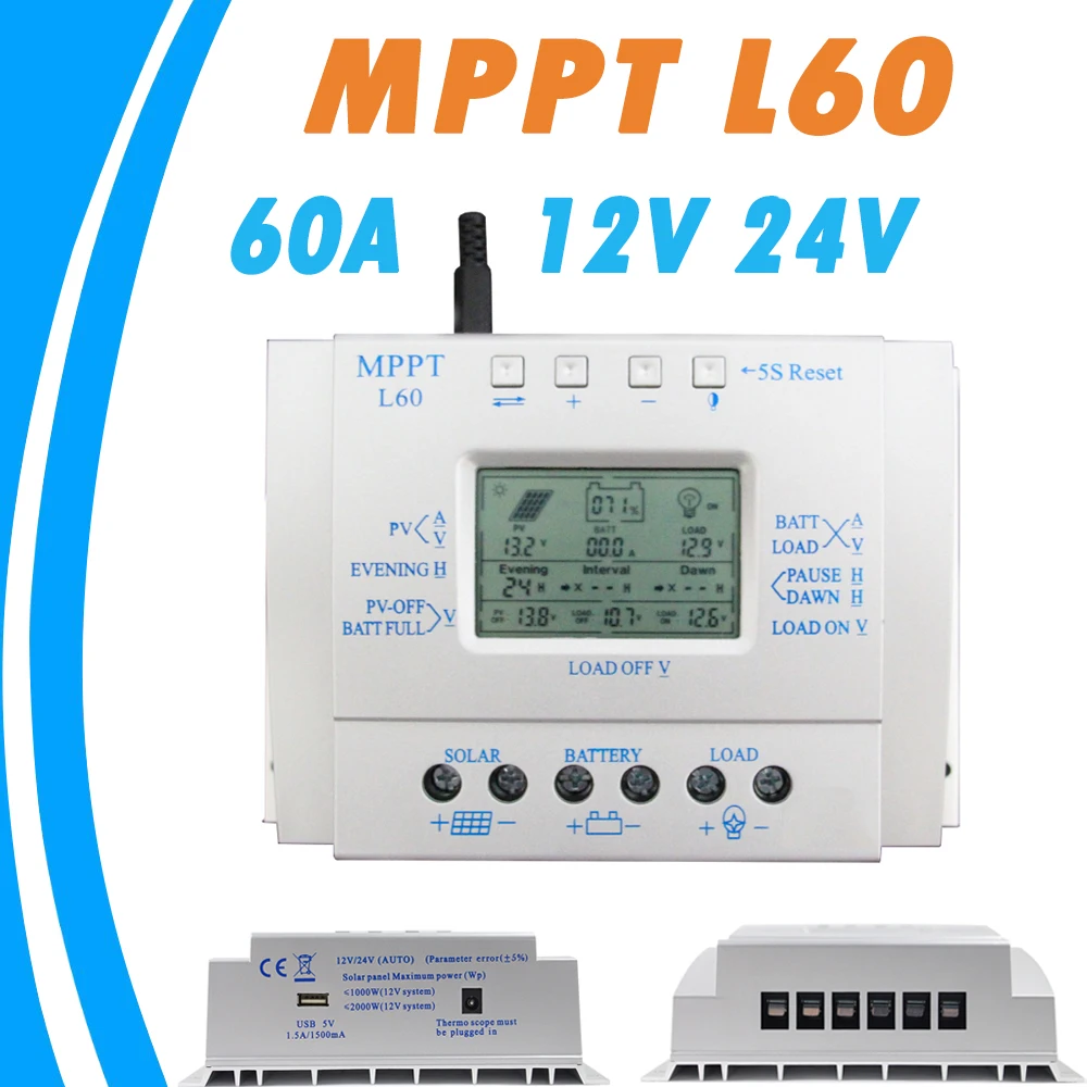 60A contrôleur de Charge de batterie solaire LCD 12V 24V Auto avec USB 5V 1500mA régulateur solaire système de suivi solaire à haut rendement.