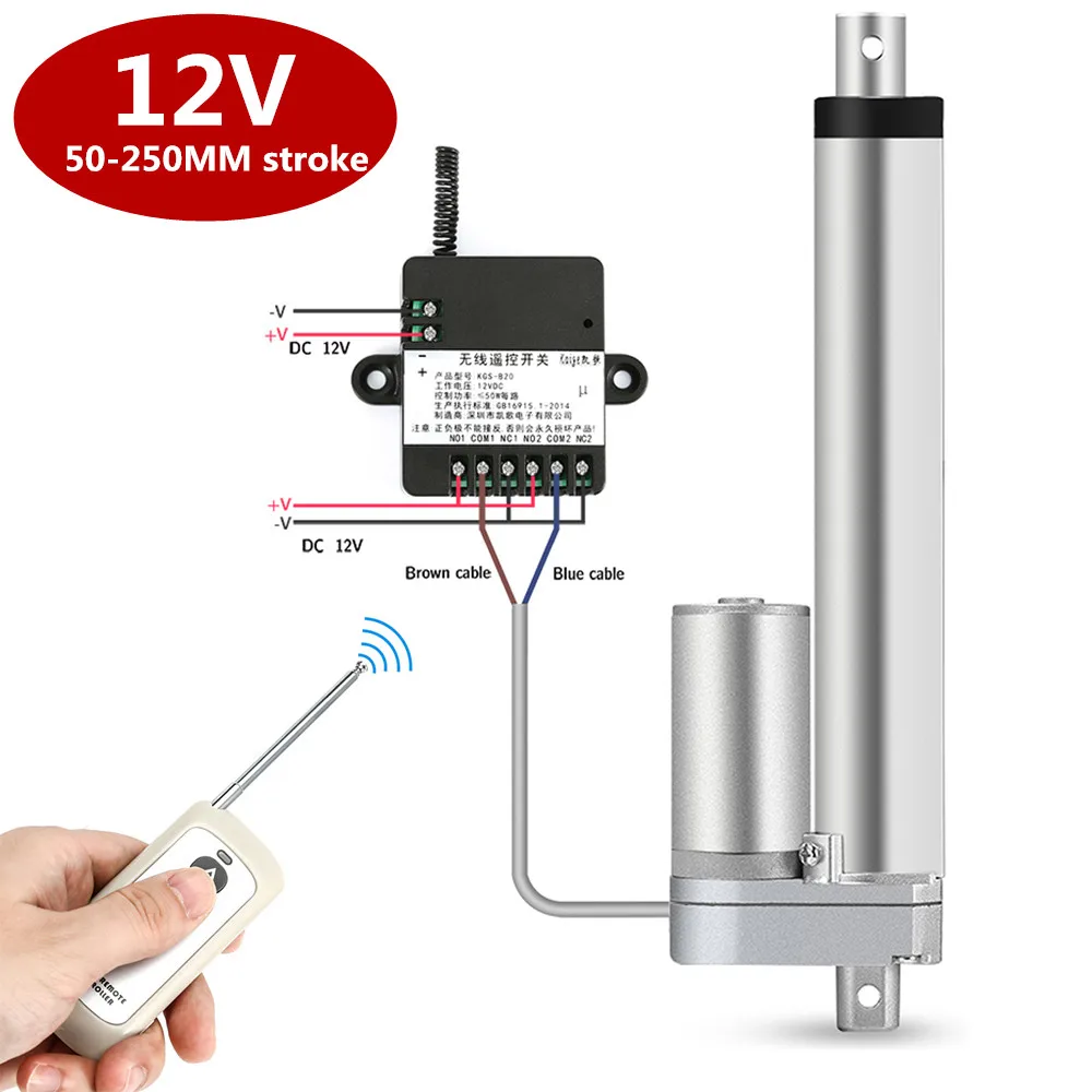 Actionneur linéaire électrique RF avec télécommande appareil ménager 12v engrenage en métal moteur linéaire pour bateau voiture vélo ventilateur.