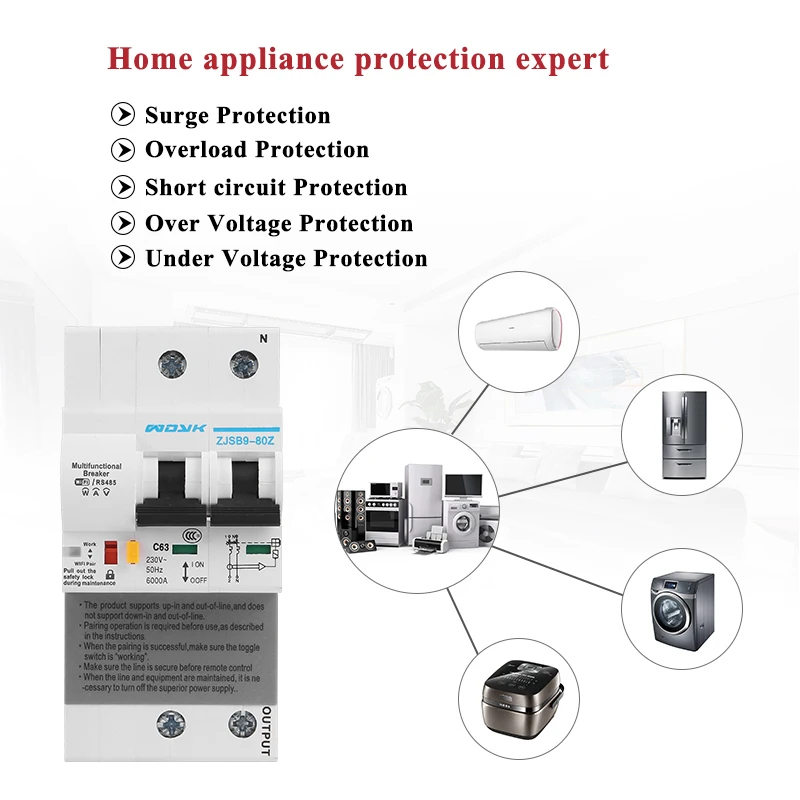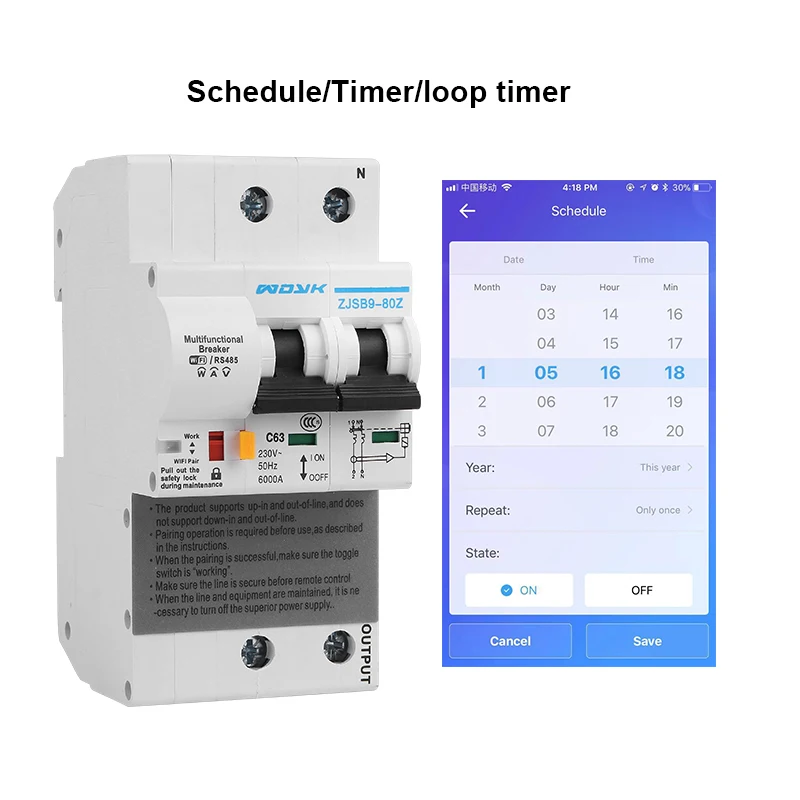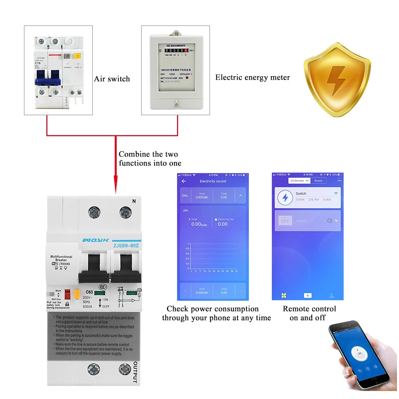 Disjoncteur intelligent WiFi 2P deuxième génération Avec contrôle de l'énergie et fonction de compteur pour Amazon Alexa et Google home