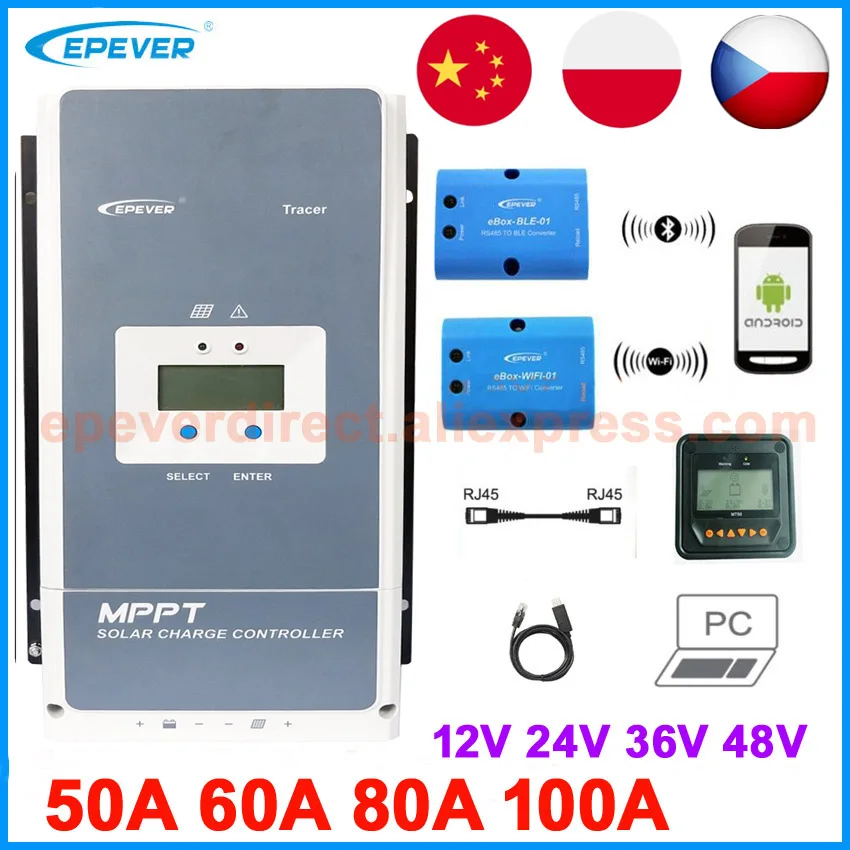 EPEVER-tracker MPPT pour panneaux solaires 50A/60A/80A/100A contrôleur de Charge de batterie (modèles 6415 an 5420AN 5415an).