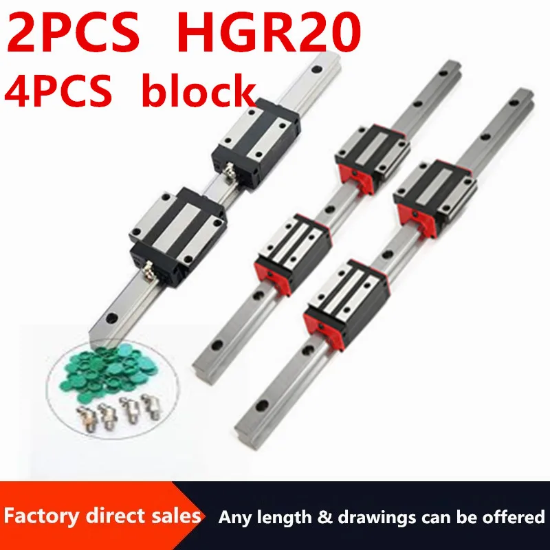 HGR20 HGH20-Rail de guidage linéaire carré 4 pièces chariots de bloc coulissant HGH20CA/bride HGW20CC/HGH20HA/HGW20HA CNC gravure de routeur