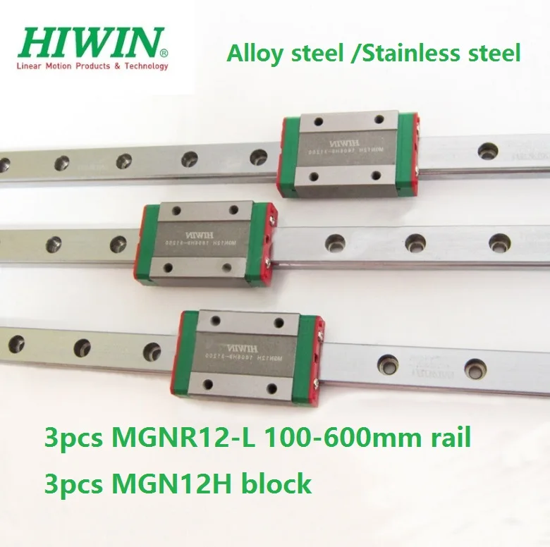 Hiwin rail mgn12-l 3 pièces 250/300/330/350/400/450/500/550mm + 3 pièces blocs MGN12H pour.