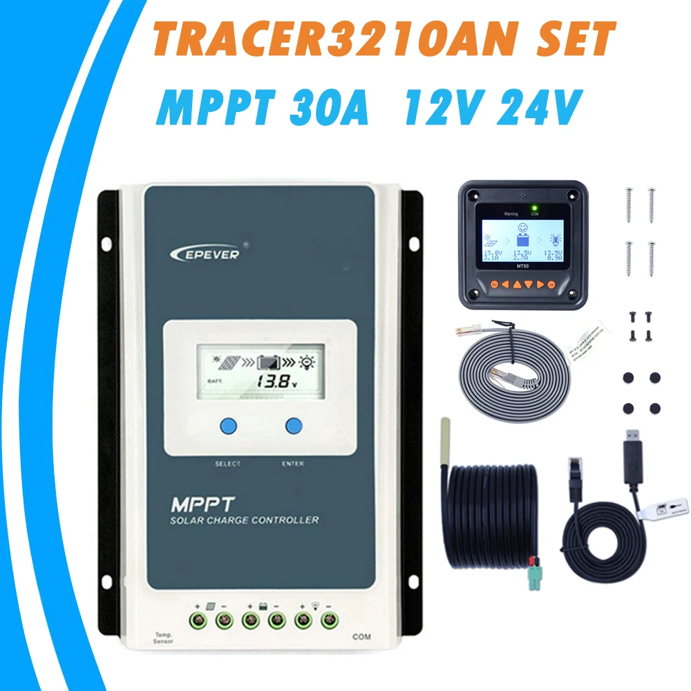 MPPT 30A EPEVER chargeur de batterie solaire 12V 24V régulateur solaire LCD lumière et minuterie contrôle de charge avec MT50 EPSOLAR Tracer3210AN