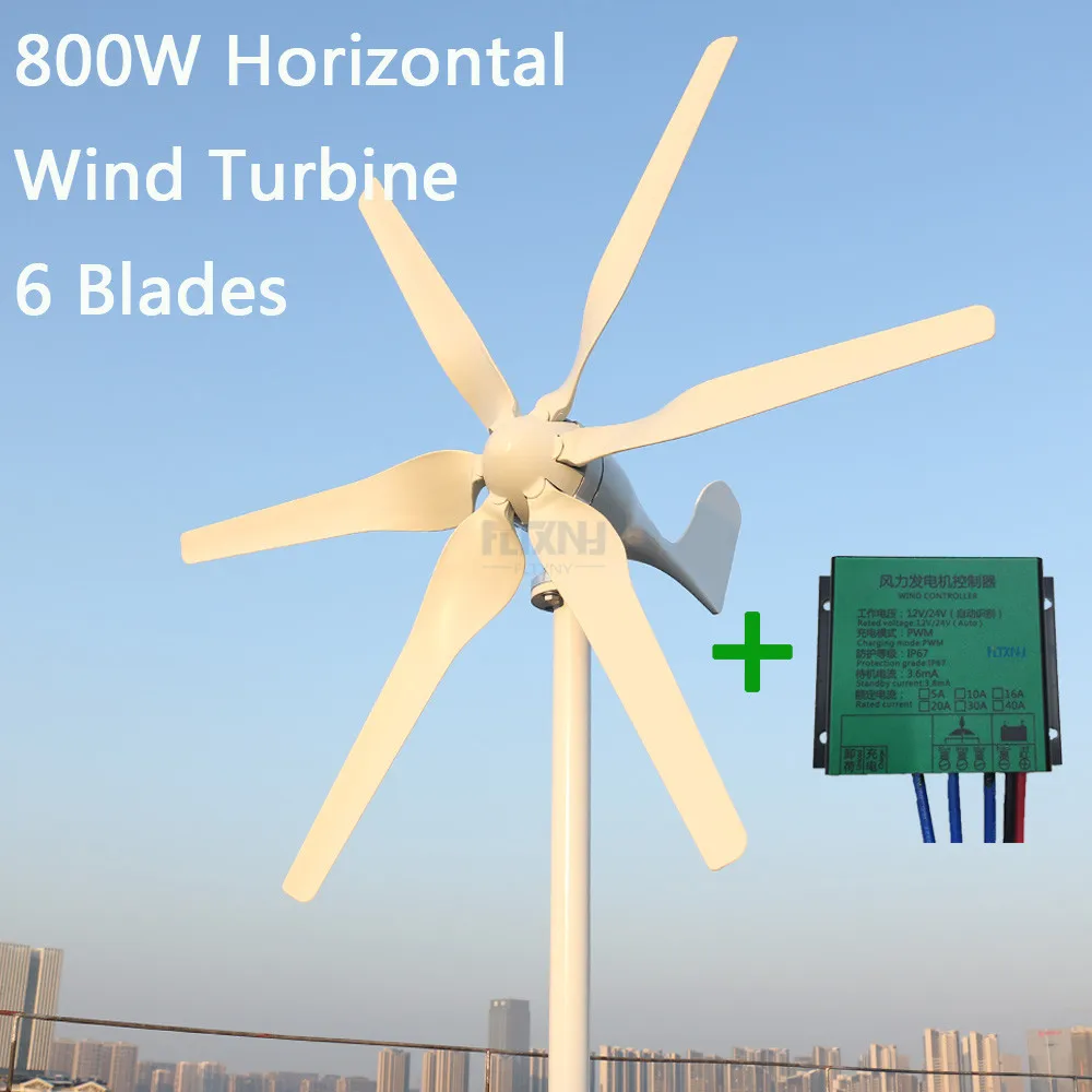 Nouveau générateur d'éolienne développé 800w 12v 24v avec contrôleur PWM gratuit à 6 lames pour un usage domestique