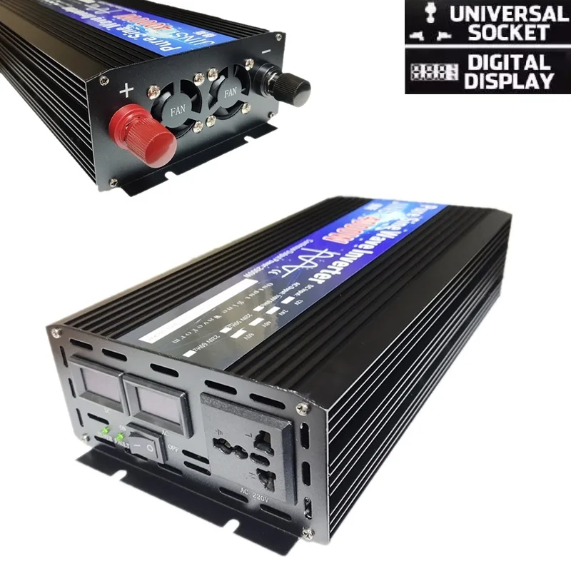 Onduleur à onde sinusoïdale Pure 12V 24V 48V 60V 220V 3000w 4000w transformateur de tension onduleur d'énergie solaire DC12V à convertisseur ca 220V LED