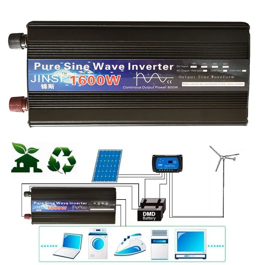 Onduleur à onde sinusoïdale Pure DC 12V 24V à ca 220V 110V 60Hz 500W 1000W 2000W convertisseur de puissance Booster pour voiture ménage bricolage