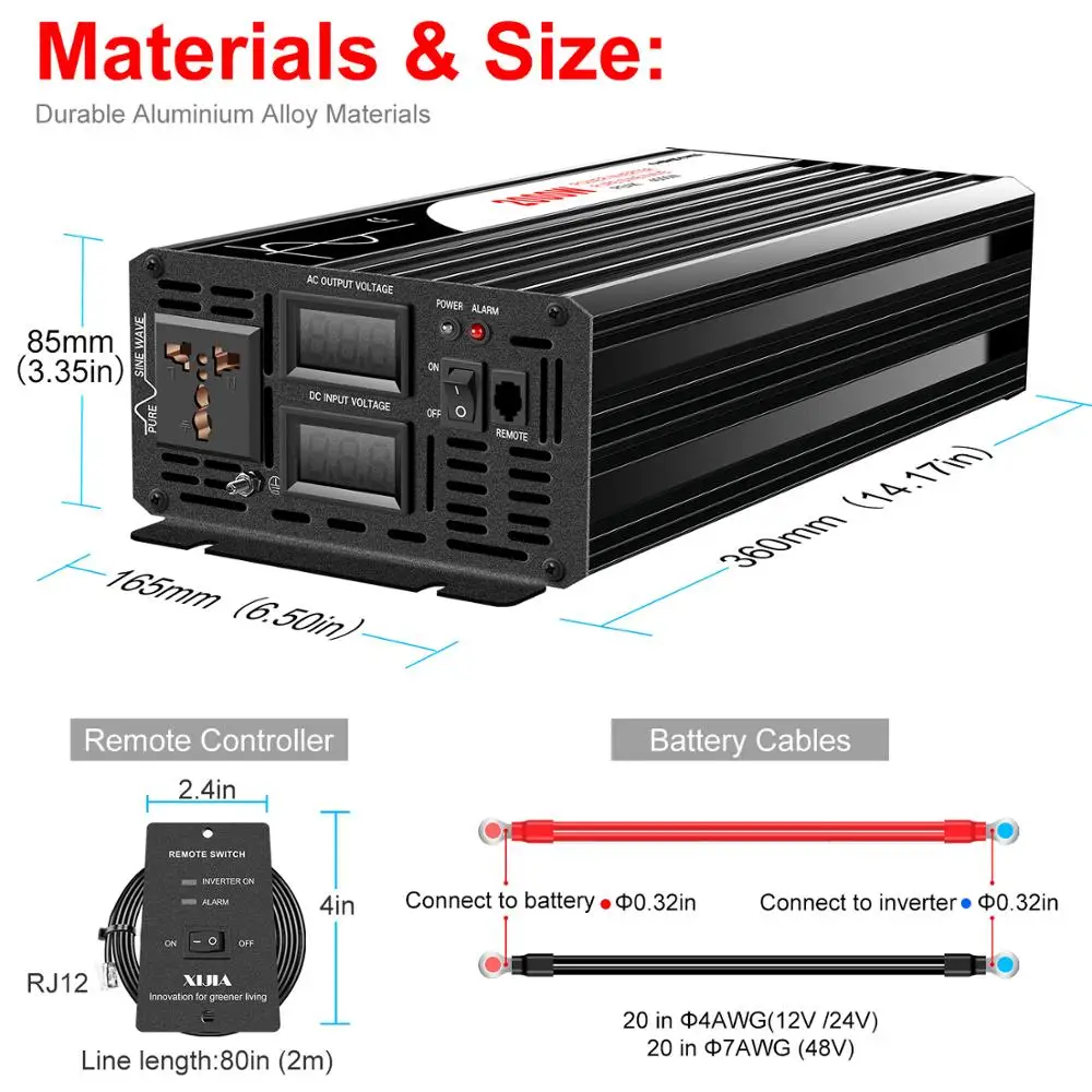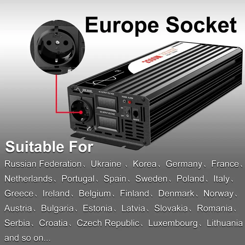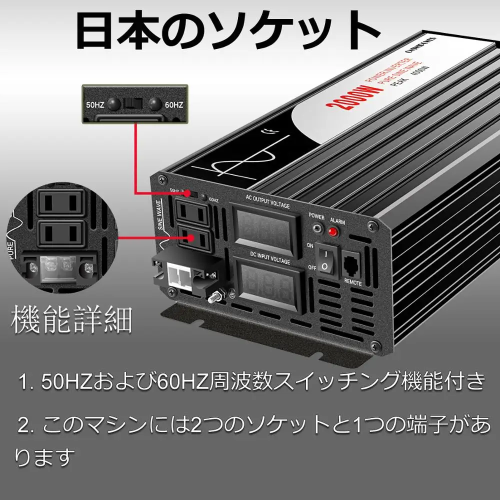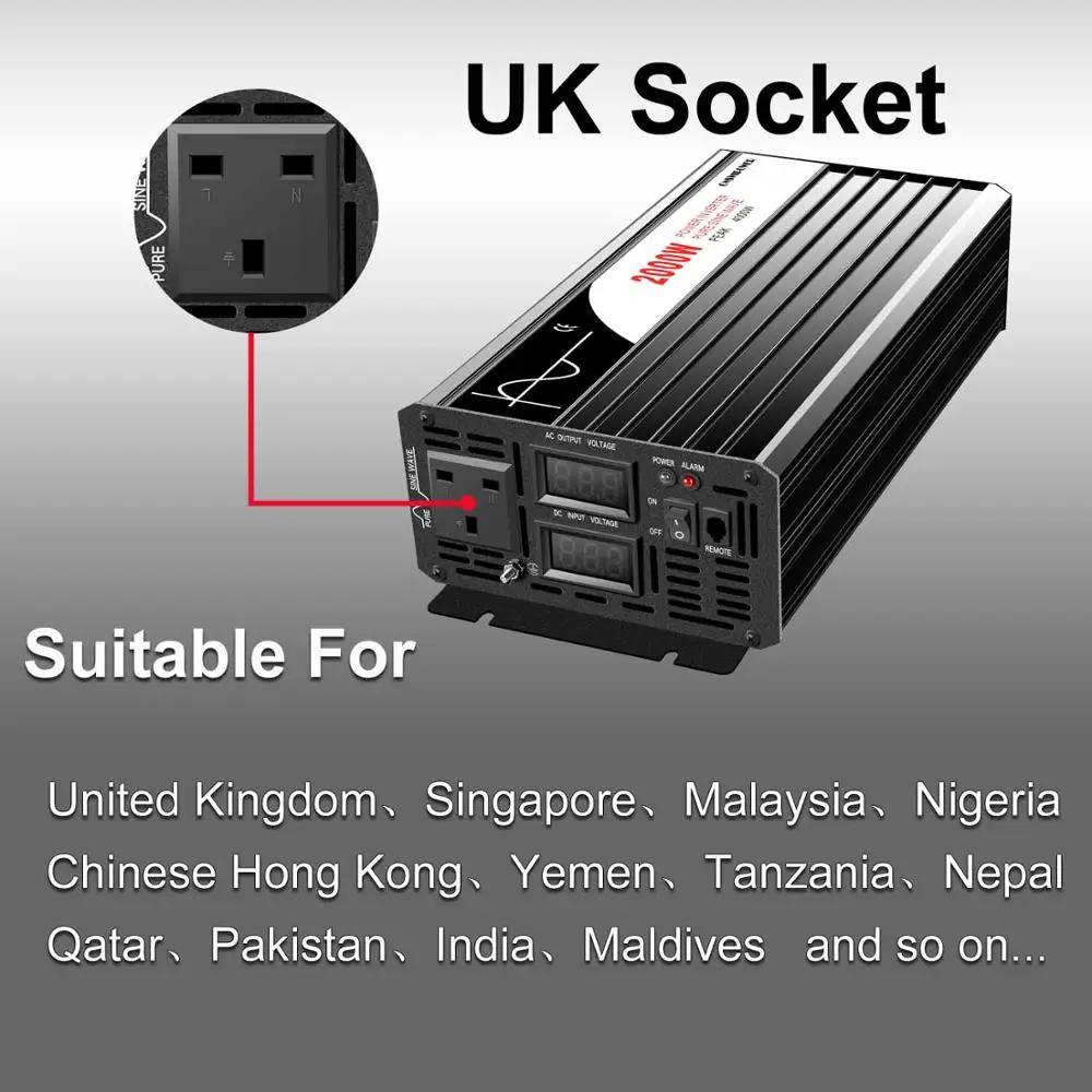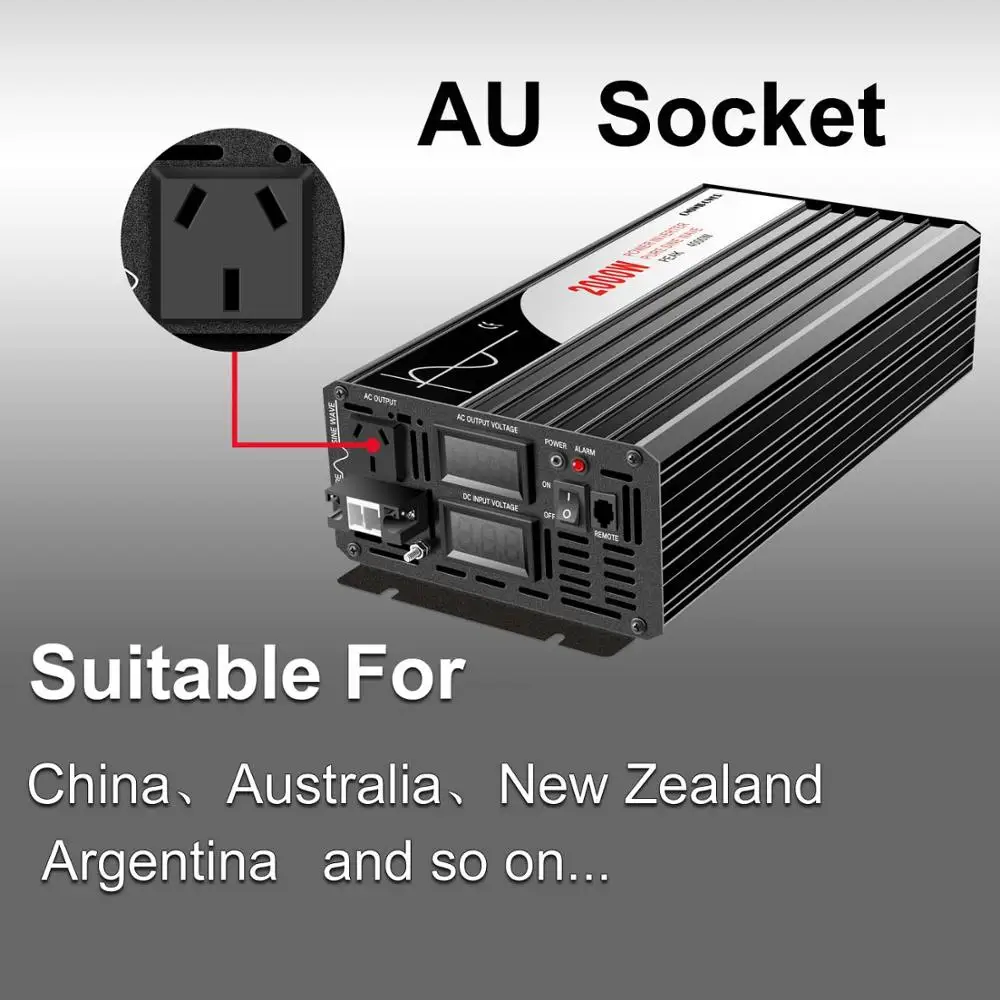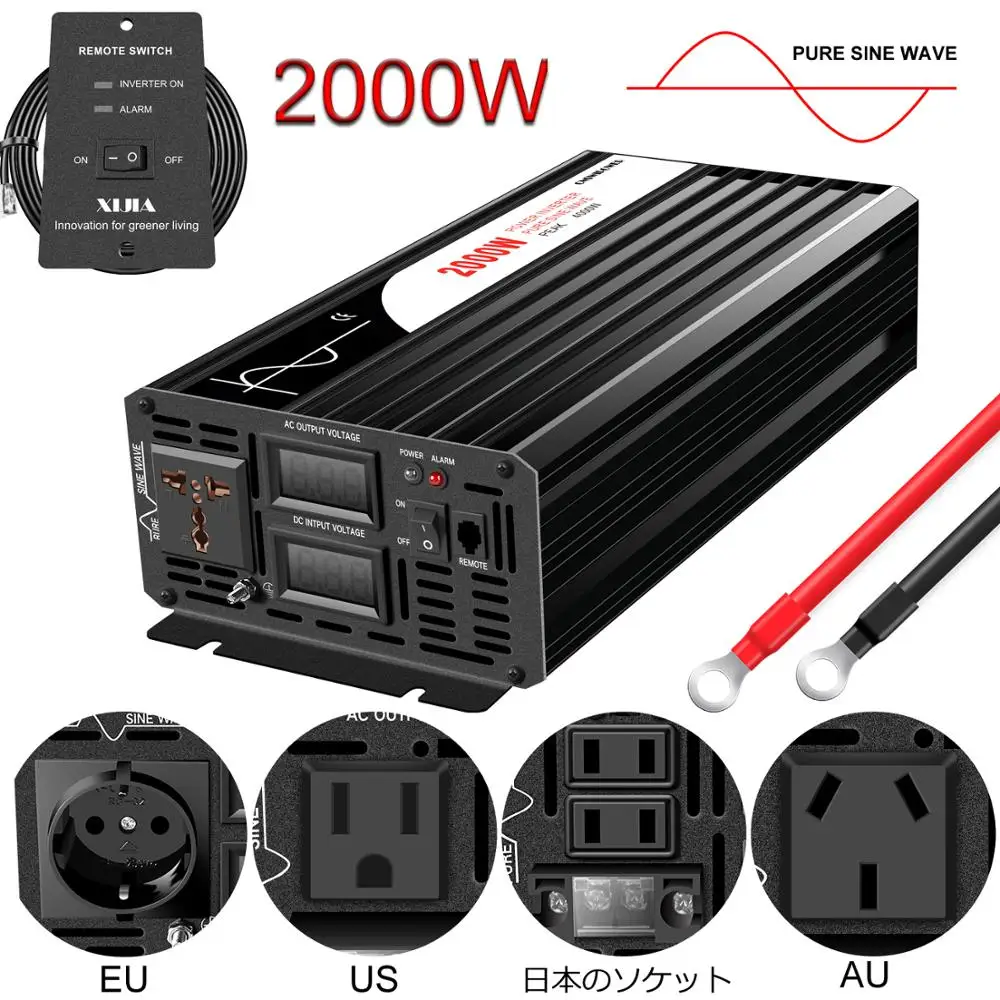 Onduleur solaire à onde sinusoïdale pure 2000W DC 12V 24V 48V à AC 110V 220V affichage numérique