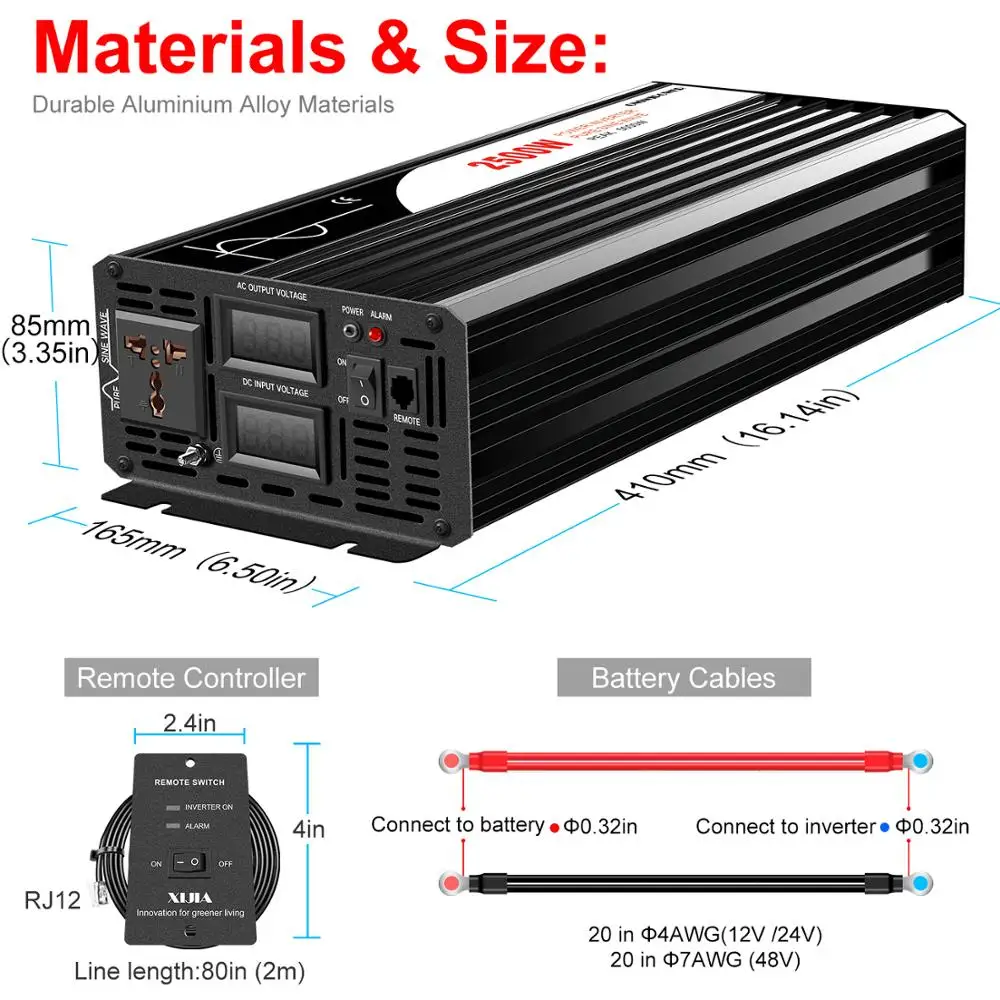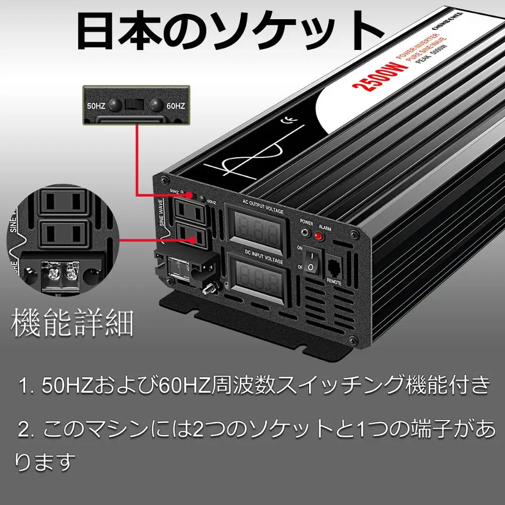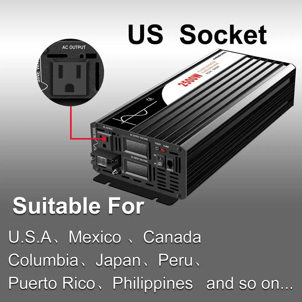 Onduleur solaire à onde sinusoïdale pure 2500W DC 12V 24V 48V à AC 110V 220V affichage numérique