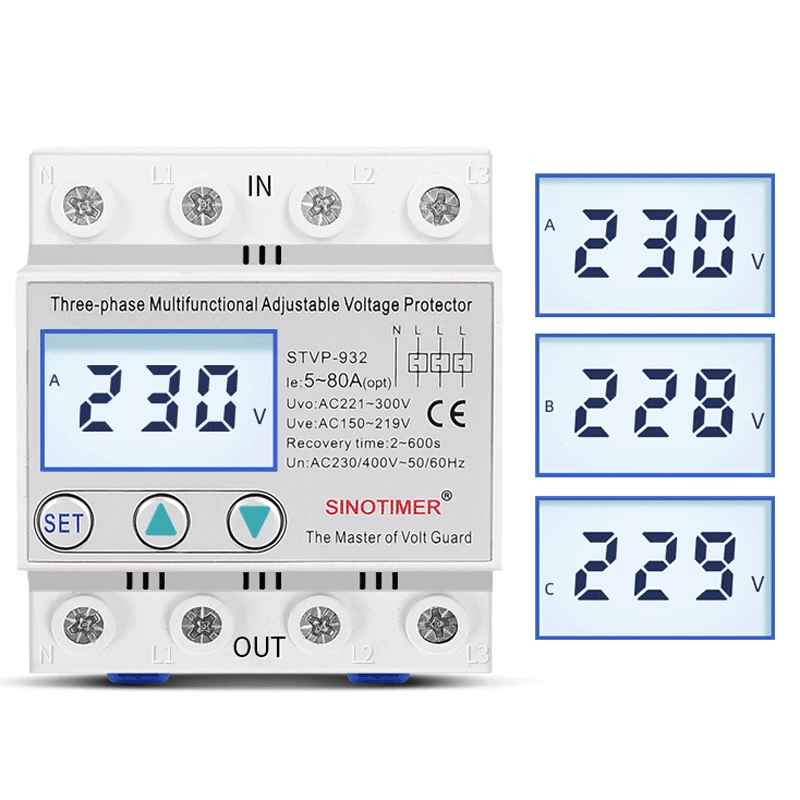 Protecteur réglable sur Rail Din AC 380V 3 phases au-dessus et sous tension relais voltmètre moniteurs séquence de Phase Protection contre les pannes