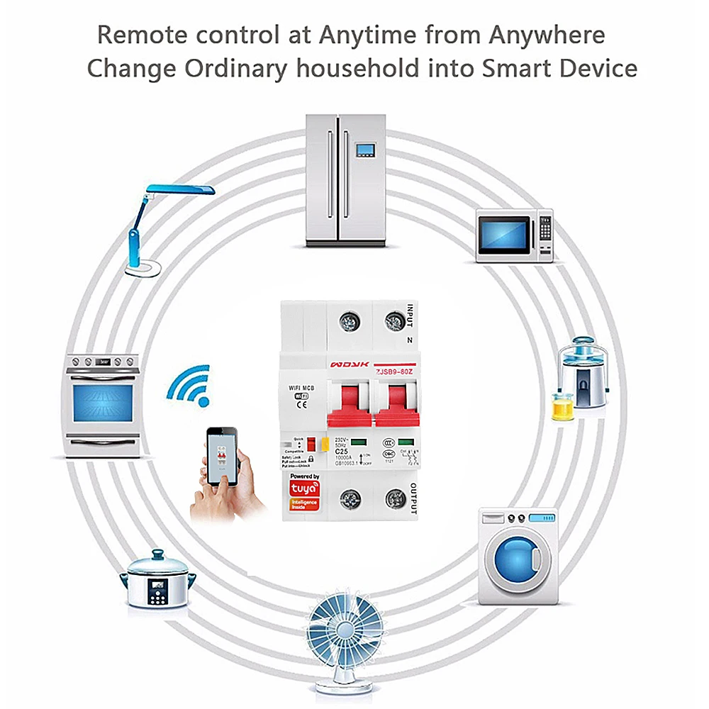 Protection intelligente de court-Circuit de surcharge de disjoncteur de WiFi de l'application 2p de vie intelligente (tuya) avec Alexa google home pour la maison intelligente.