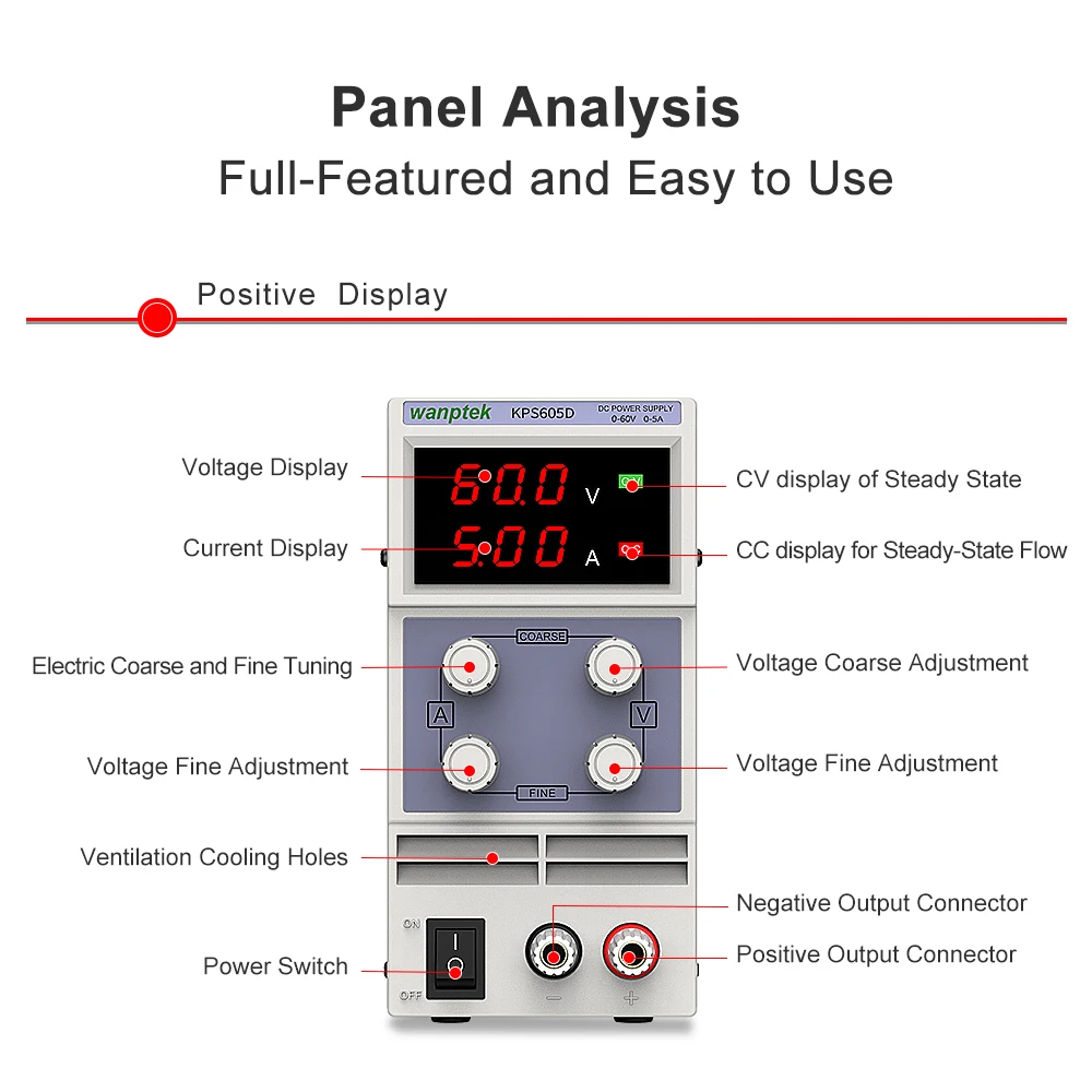 Stabilisateur de laboratoire alimentation cc réglable 60V 5A régulateur de tension commutation Variable banc Source 30V 10A wanptek bricolage