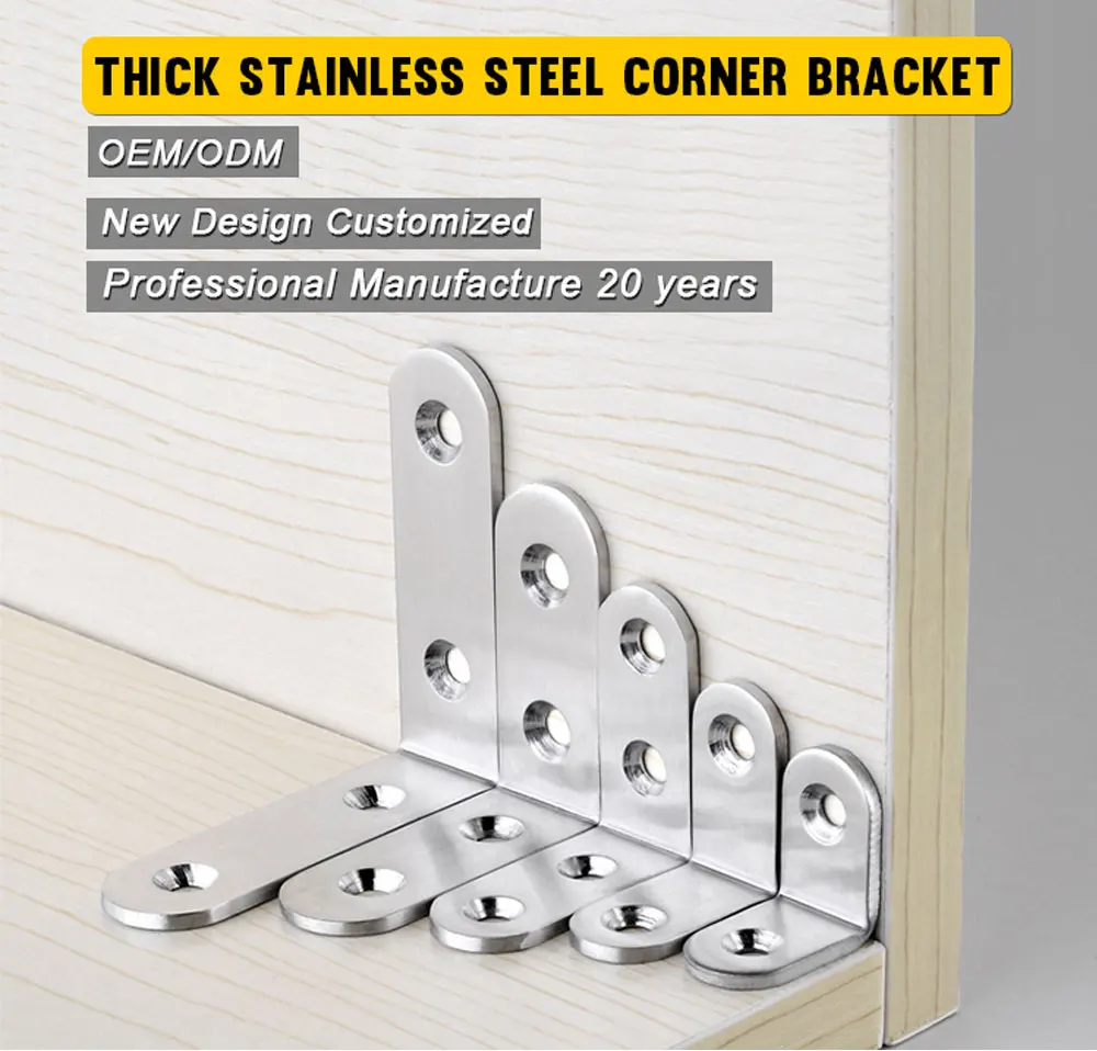 YUMORE 100 pièces/lot en acier inoxydable coin supports pour meubles armoire écrans mur 3mm épaissir coin support support