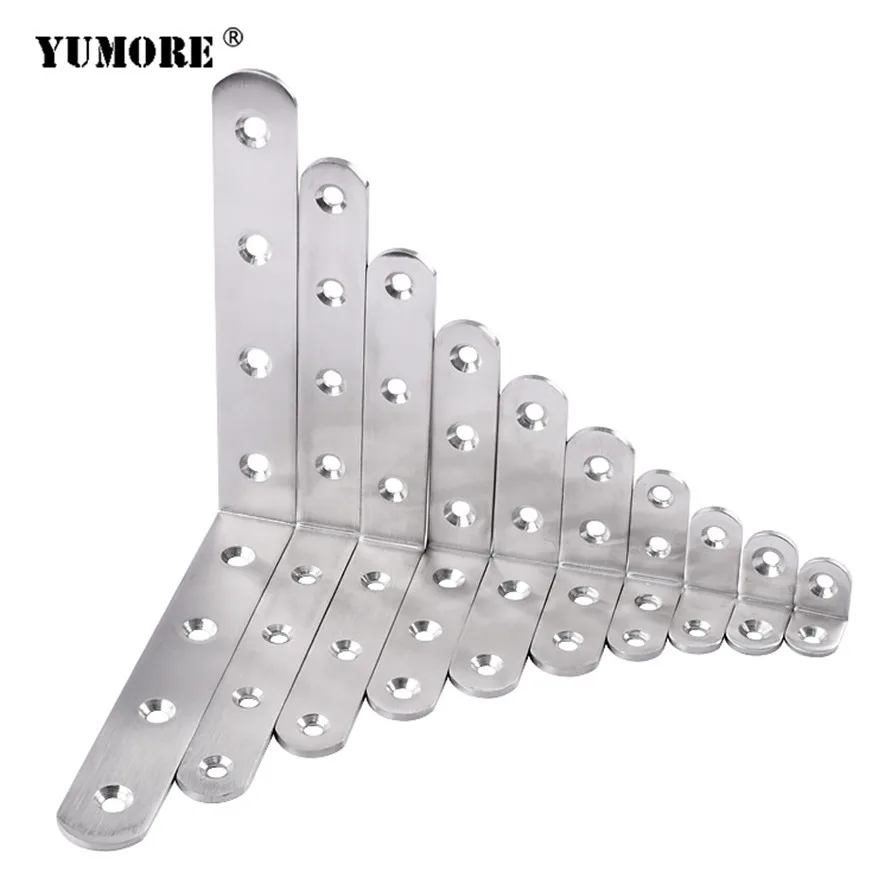 YUMORE 100 pièces/lot en acier inoxydable coin supports pour meubles armoire écrans mur 3mm épaissir coin support support.
