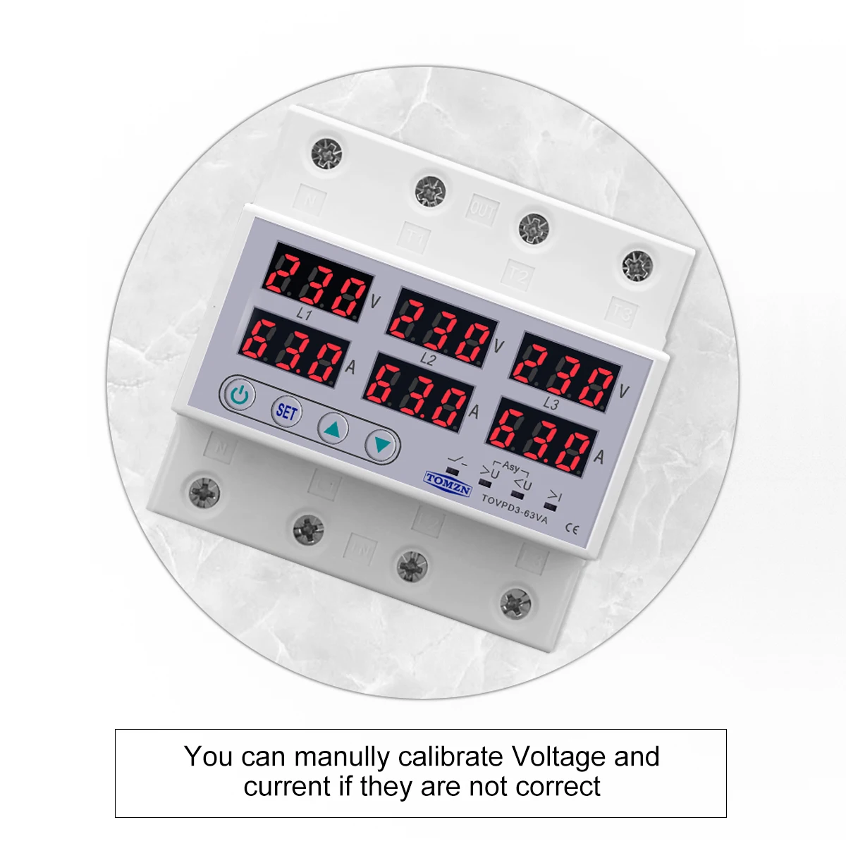3 phases 380V Din rail voltmètre ampèremètre réglable sur et sous tension courant limite protection moniteur relais protecteur.
