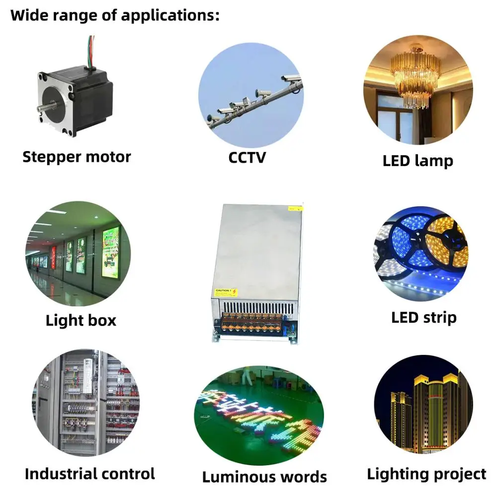 Alimentation électrique 1000W 800W 600W AC 220V à cc 48V 36V 24V 12V transformateur d'alimentation électrique cc SMPS ininterrompu