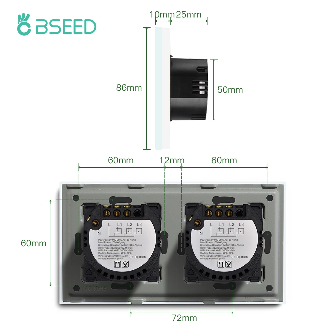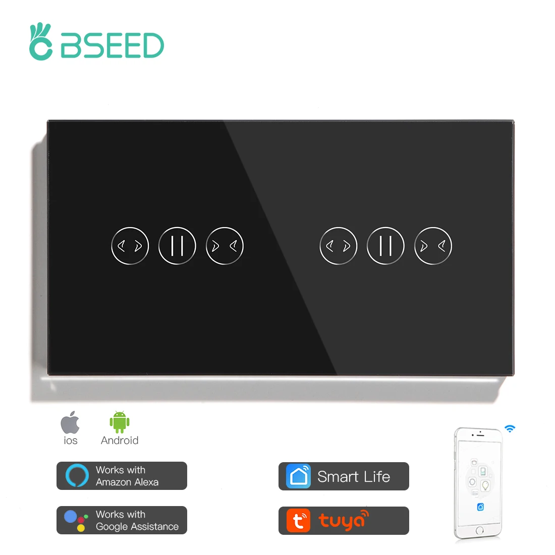 Bseed Wifi interrupteur à rideau tactile Double volet roulant intelligent noir blanc stores sans fil classe de cristal vie intelligente TUYA App.