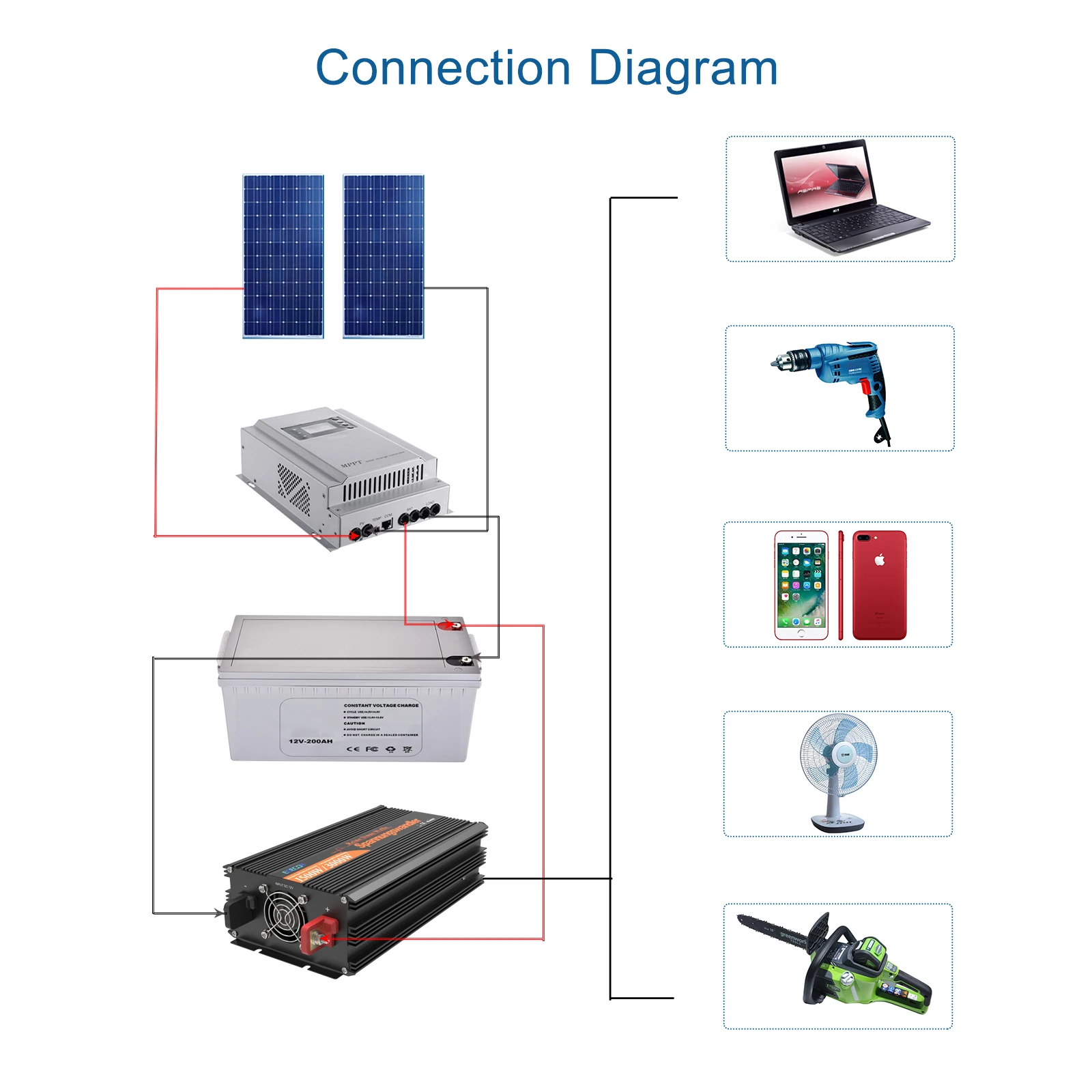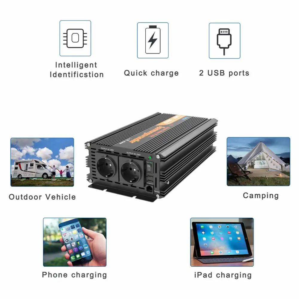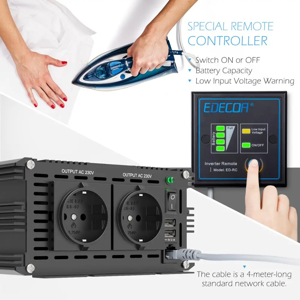 EDECOA 12V 220V 3500W / 7000W pic onduleur solaire à onde sinusoïdale pure cc à onduleur