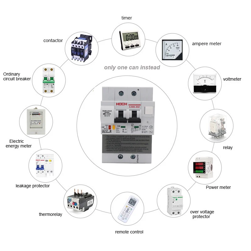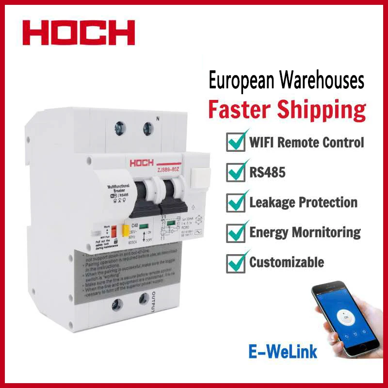 HOCH ZJSB9-80Z fuite surveillance de l'énergie WIFI disjoncteur usine minuterie télécommande 2P Ewelink App sans fil commutateur intelligent