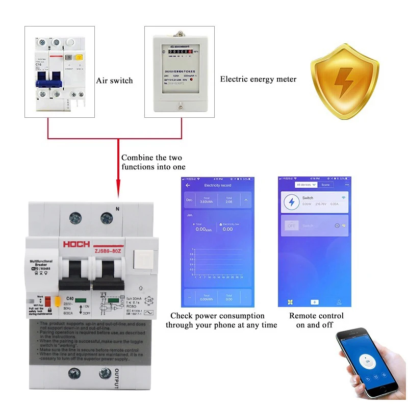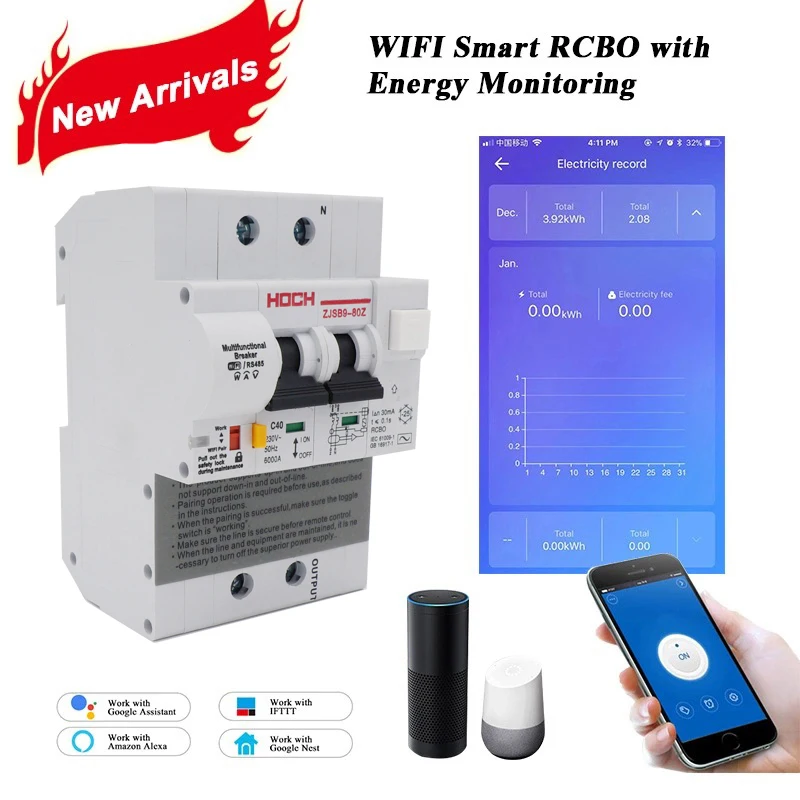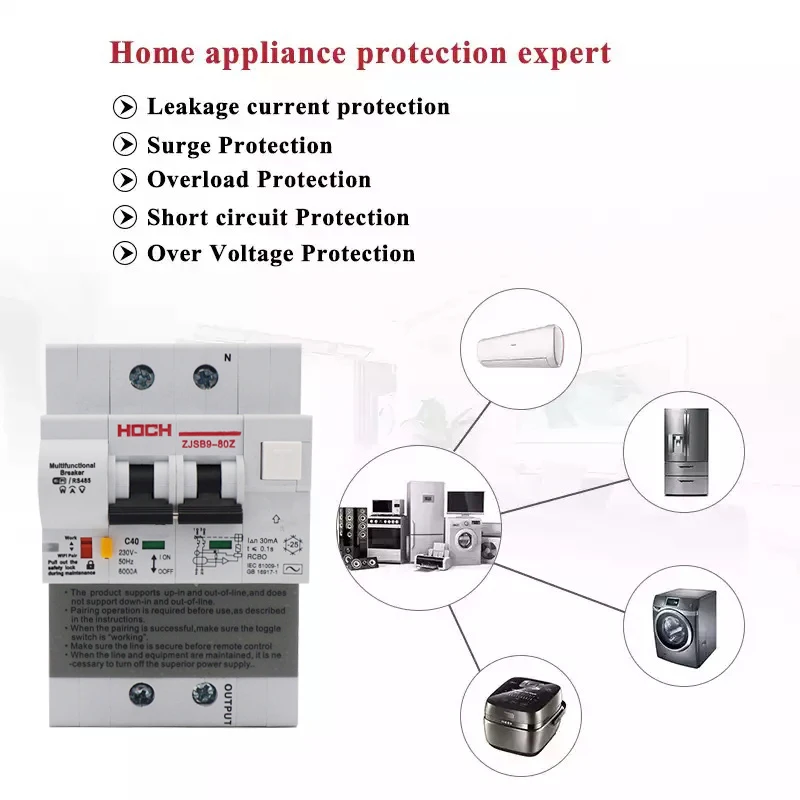HOCH ZJSB9-80Z fuite surveillance de l'énergie WIFI disjoncteur usine minuterie télécommande 2P Ewelink App sans fil commutateur intelligent.