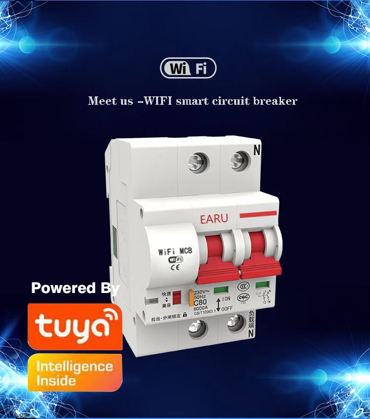 Interrupteur disjoncteur WIFI intelligent sans fil 10A-125A minuterie application Tuya Vioce télécommande Amazon Alexa Google Home 1P/2P/3P/4P