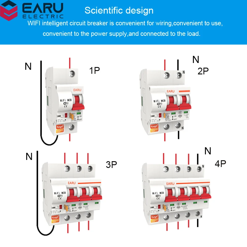 Interrupteur disjoncteur WIFI intelligent sans fil 10A-125A minuterie application Tuya Vioce télécommande Amazon Alexa Google Home 1P/2P/3P/4P.