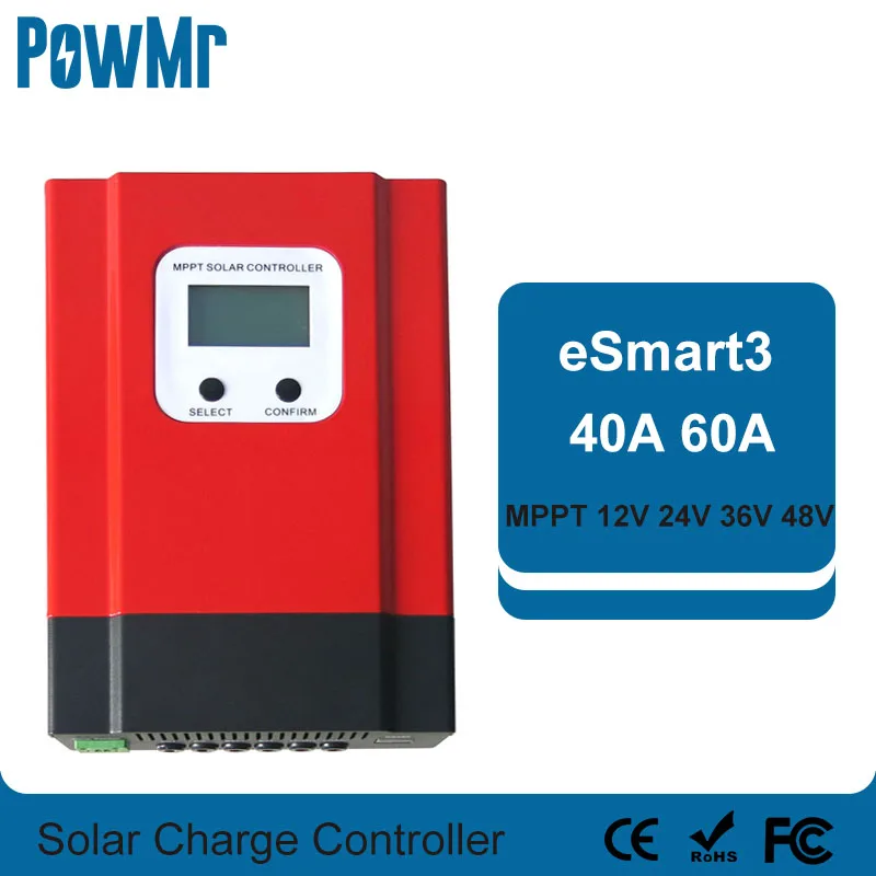 PowMr ESmart3 MPPT 40A 60A contrôleur solaire 48V/36V/24V/12V Auto rétro-éclairage LCD Max 150VDC entrée économie d'énergie RS485 Port.